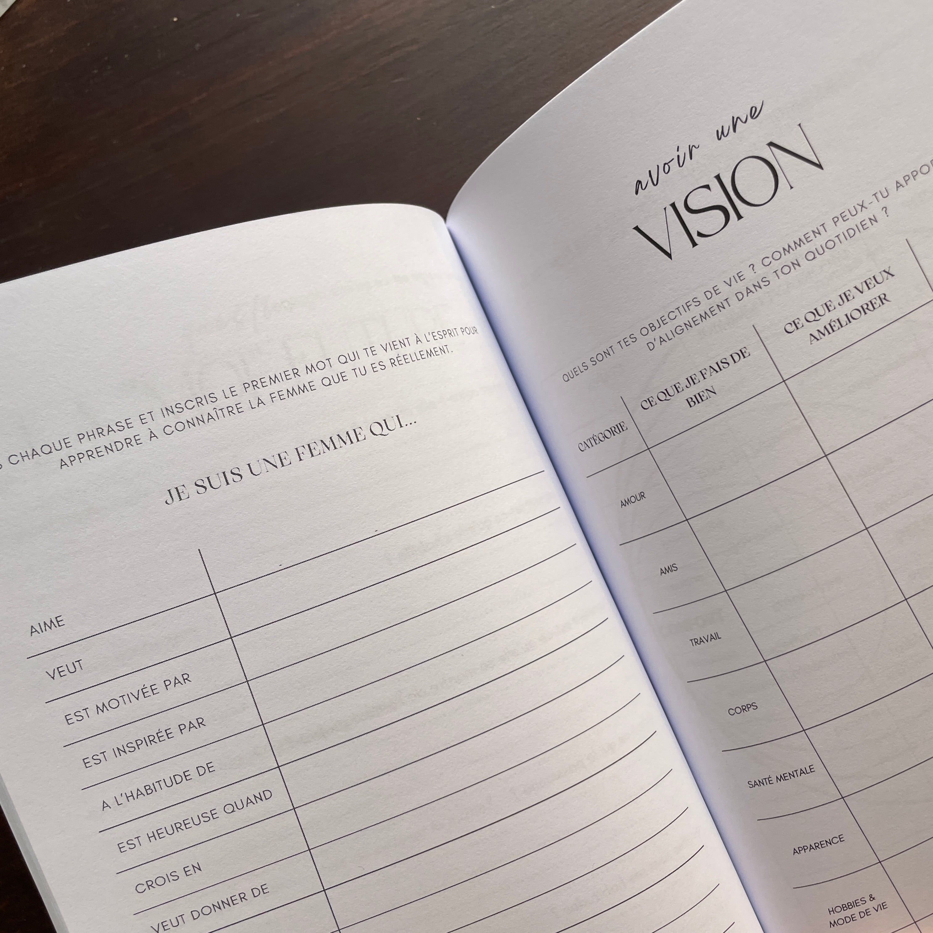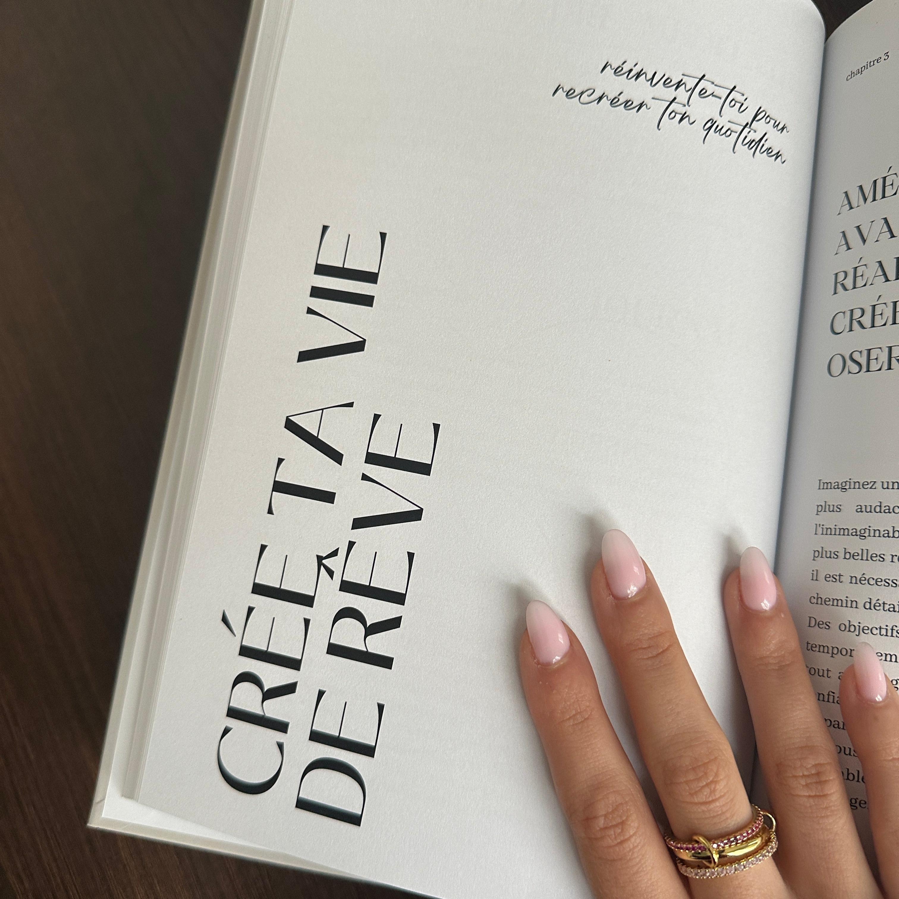 de plus, tu es + investie dans ta transformation personnelle car tu vois un objet physique au lieu d'une vidéo dans ta barre de favoris. tu y penses + souvent, et le travail sur soi devient un véritable rituel bien être, et je crée des visuels hyper esthétiques pour m'en assurer ✨