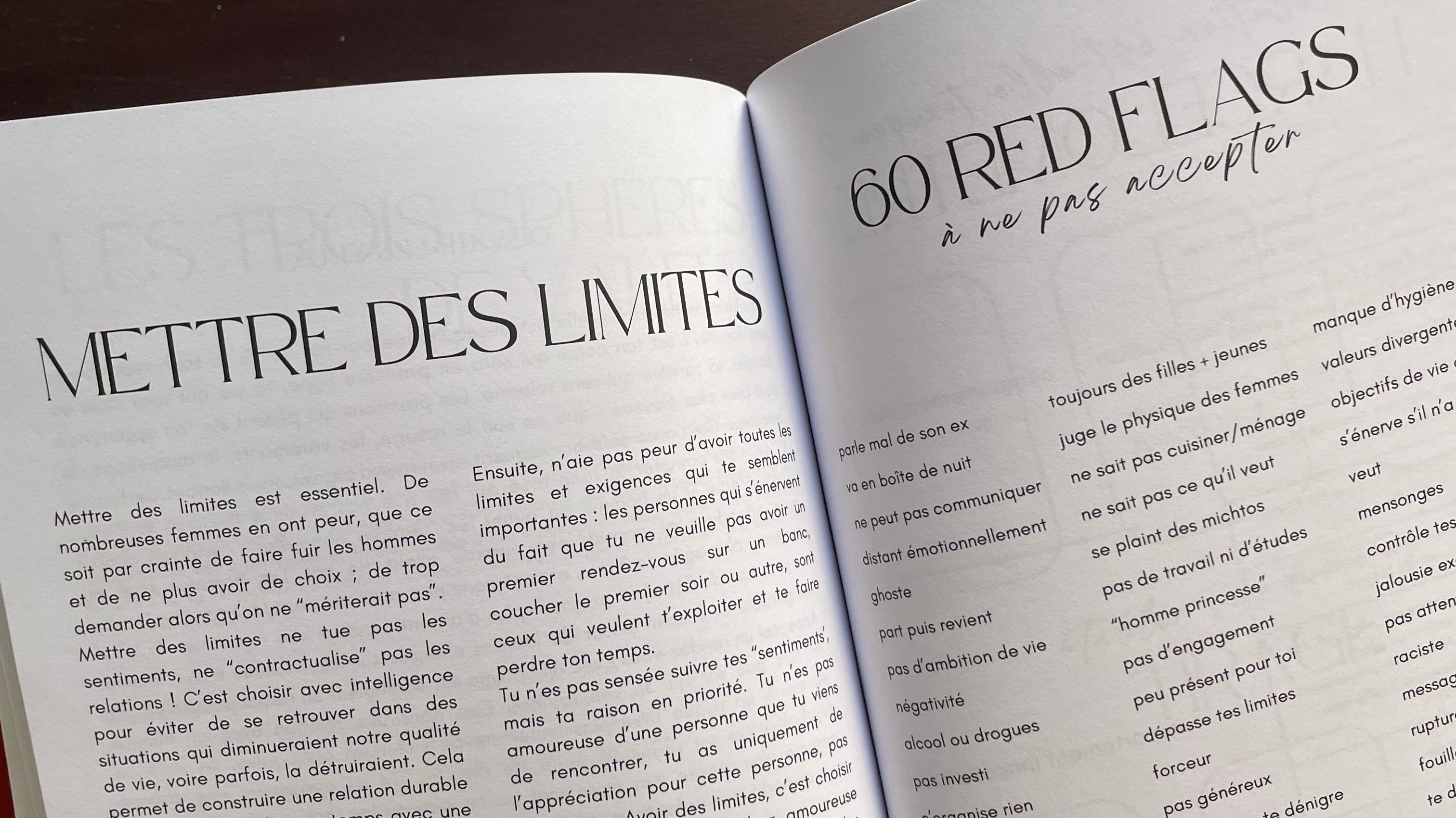 les relations amoureuses : réalise ta valeur, apprends à mettre des limites, affirme ce que tu veux et trouve la bonne personne.